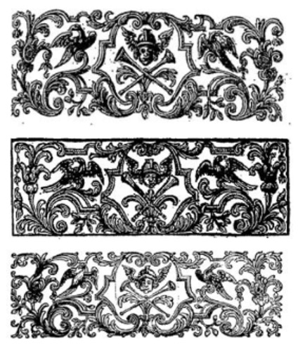 the notion of a single printer owning certain woodblocks for creating ornaments. If