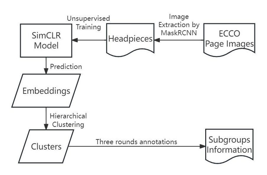 One main focus in this paper is headpiece —a large decorative illustration placed usually at the top of a page. These headpieces,